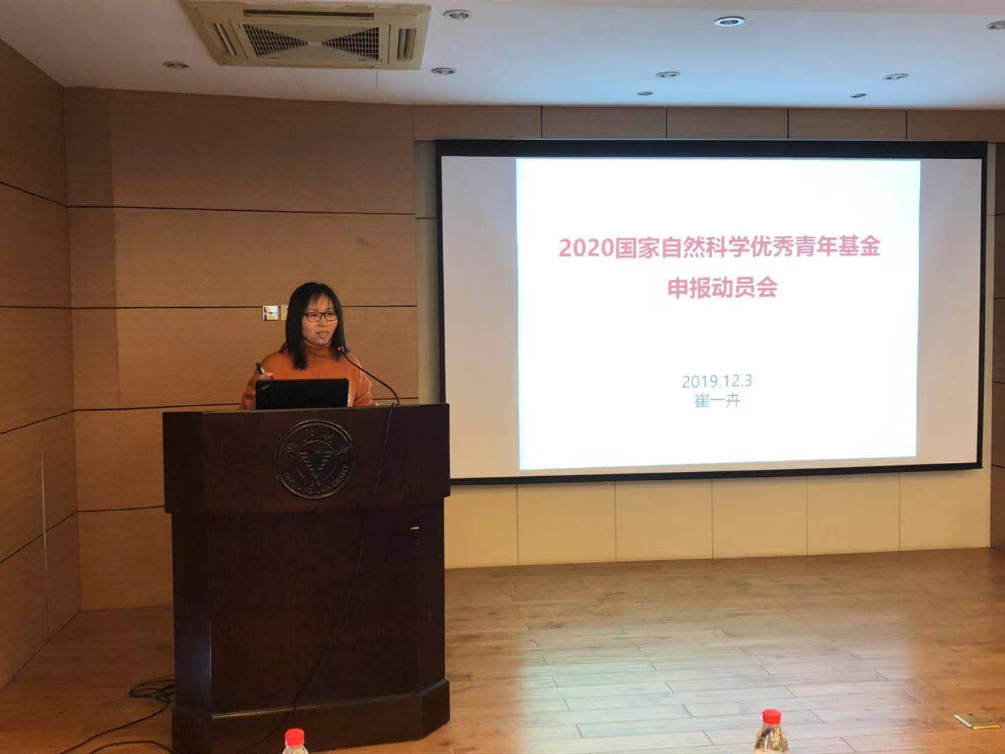 12月3日下午,学院召开2020年国家自然科学基金优青项目申报动员会。会上邀请2019年国家优青项目获得者崔一卉和张岩两名老师做专题介绍和经验分享,医学院科研办项目与成果办郑轶副主任做政策解读,医学院各院系及附属医院20余位老师参加,会议由万象城allwincity官网副院长杨巍教授主持。