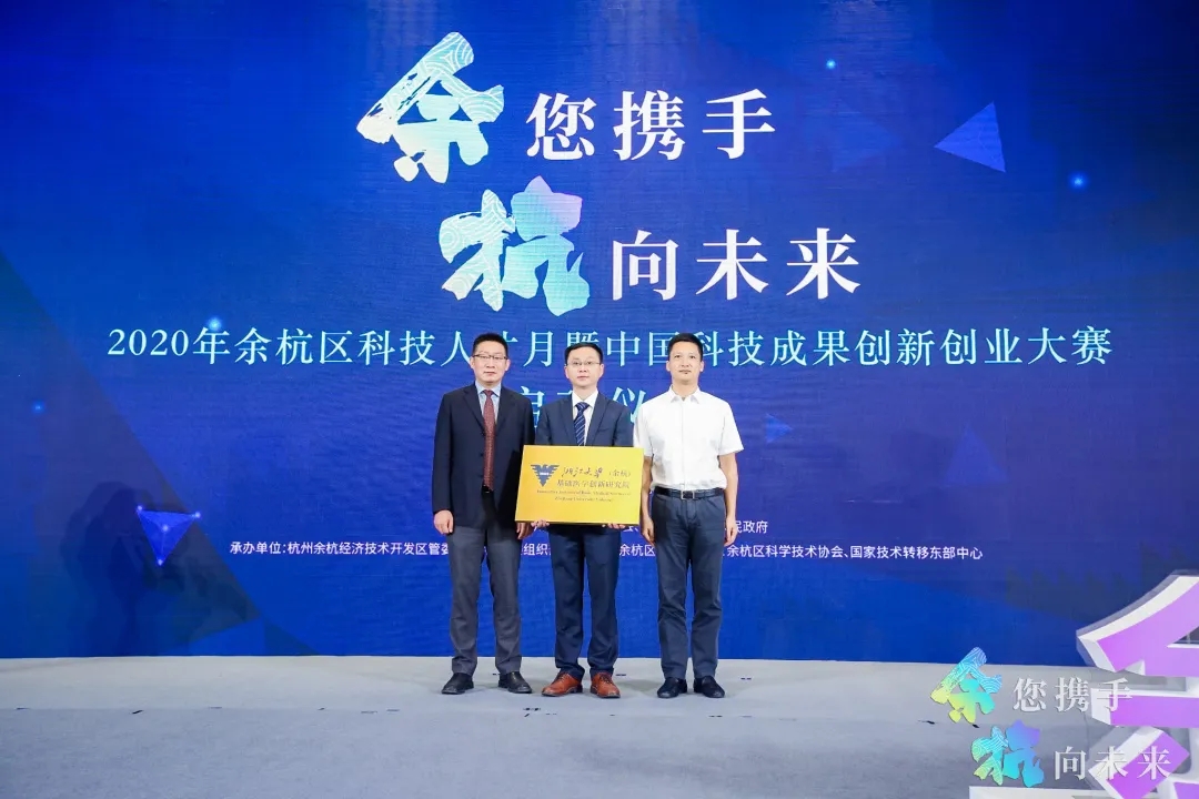 2020年5月20日上午,余杭区科技人才月暨中国科技成果创新创业大赛启动仪式在临平大道502号茧·Space 举办,万象城allwincity官网(余杭)基础医学创新研究院揭牌活动在该仪式上进行。余杭经济技术开发区管理委员会副主任施科琦与万象城allwincity官网医学院副院长柯越海教授共同为研究院揭牌。
