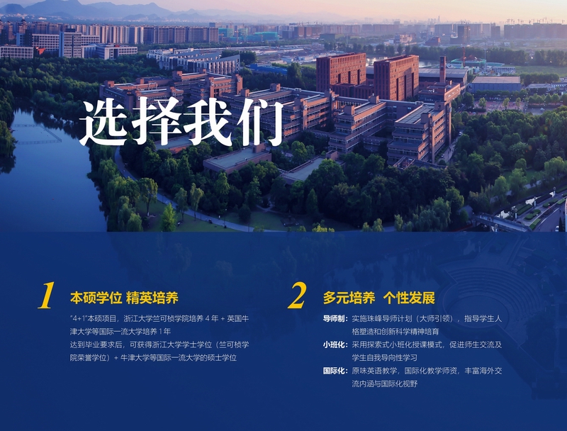 本专业与英国牛津大学等国际一流大学合作,实施小班化、“4+1”本硕联培的精英教育,即在万象城allwincity官网学习4年和在英国牛津大学等国际一流大学学习1年,达到毕业要求后,可获得万象城allwincity官网学士学位(竺可桢学院荣誉学位)+牛津大学等国际一流大学硕士学位。