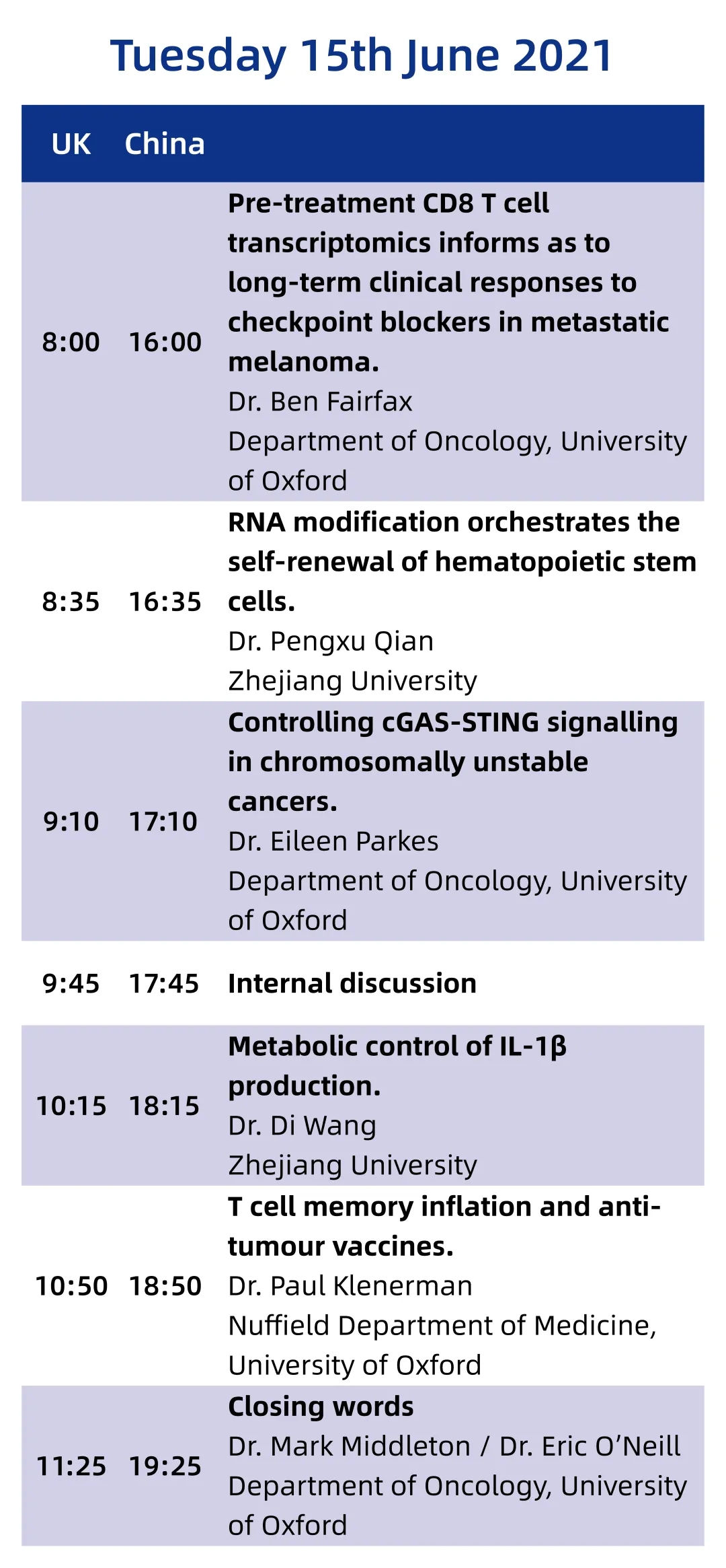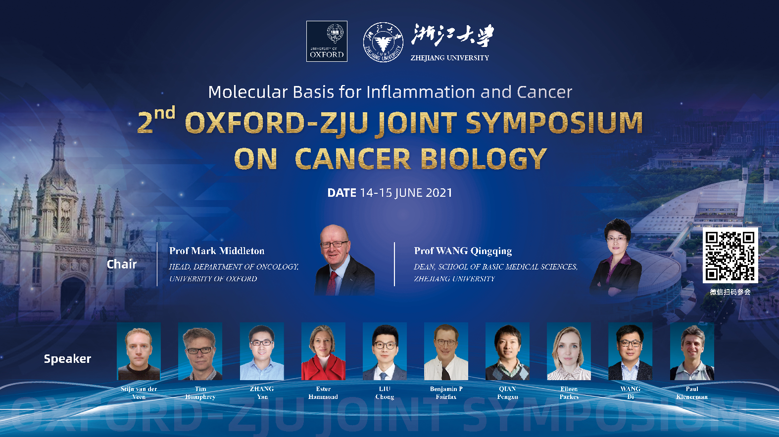 为了推进与世界顶尖大学的交流合作,万象城allwincity官网与牛津大学肿瘤系建立了坚实的合作伙伴关系。双方合作培养基础医学拔尖人才,2019年已成功联合举办首届”万象城allwincity官网-牛津大学癌症生物学系列讲座”。在此初夏时节,双方将举办主题为“ Molecular basis for inflammation and cancer”的第二届联合系列讲座。我们将汇聚肿瘤、炎症与免疫及结构药理学等领域专家,分享最新研究成果,讨论相关前沿热点,探索基础理论问题与临床转化方向。