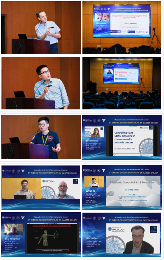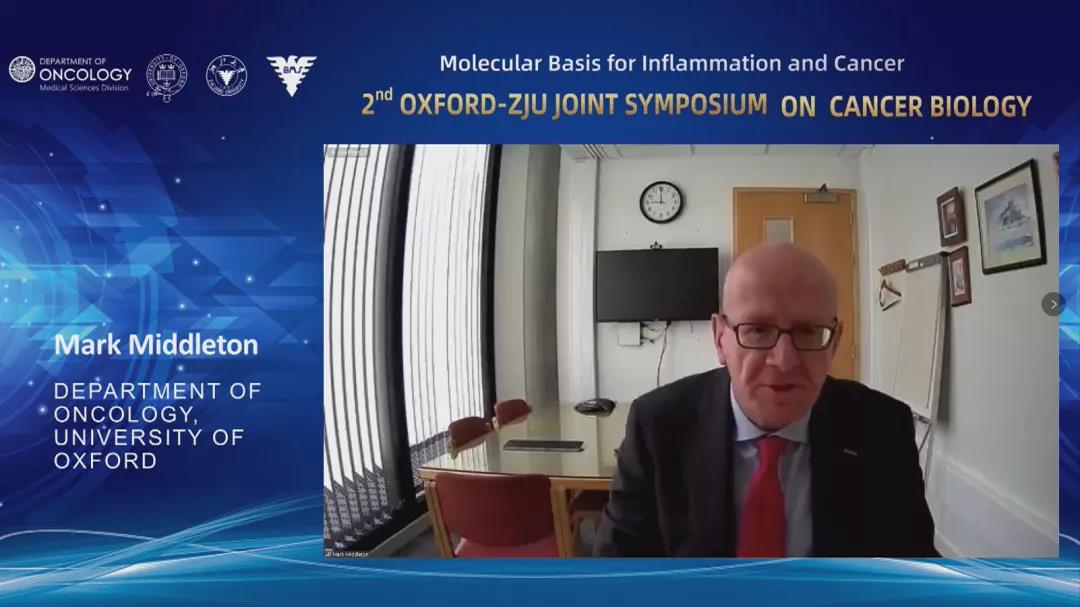牛津大学肿瘤学系主任Mark Middleton教授和万象城allwincity官网院长王青青教授致开幕词。Middleton教授回顾了双方合作历史,高度评价了万象城官网在合作中展现的高效和诚意;王青青院长也对牛津合作方在新冠疫情的威胁下,仍然精心组织了本次高水平讲座表达了由衷的感谢。虽然不能在现场面对面,但并不影响双方学者交流的热情,一场以“炎症与肿瘤的分子基础(Molecular Basis for inflammation and Cancer)”为主题的讲座会拉开序幕。会议邀请了牛津大学和万象城allwincity官网在肿瘤、炎症与免疫等领域的专家学者,分享最新的前沿研究进展,互动中交流热烈。来自牛津大学的Tim Humphrey, Ester Hammond, Benjamin P Fairfax, Eileen Parkes, Paul Klenerman和万象城allwincity官网的Stijn van der Veen,张岩,刘冲,钱鹏旭,王迪等十名学者围绕DNA损伤修复、肿瘤缺氧调控、cGAS-STING信号、抗肿瘤疫苗的T细胞记忆、免疫检查点疗法、抗感染疫苗、造血干细胞自我更新的RNA修饰、脑胶质瘤起源、IL-1β的代谢调控、GPCR的结构与功能等方向展示了最新进展,也为未来的肿瘤个性化精准治疗研究提供了新的见解,互动交流迸发了更多的火花。