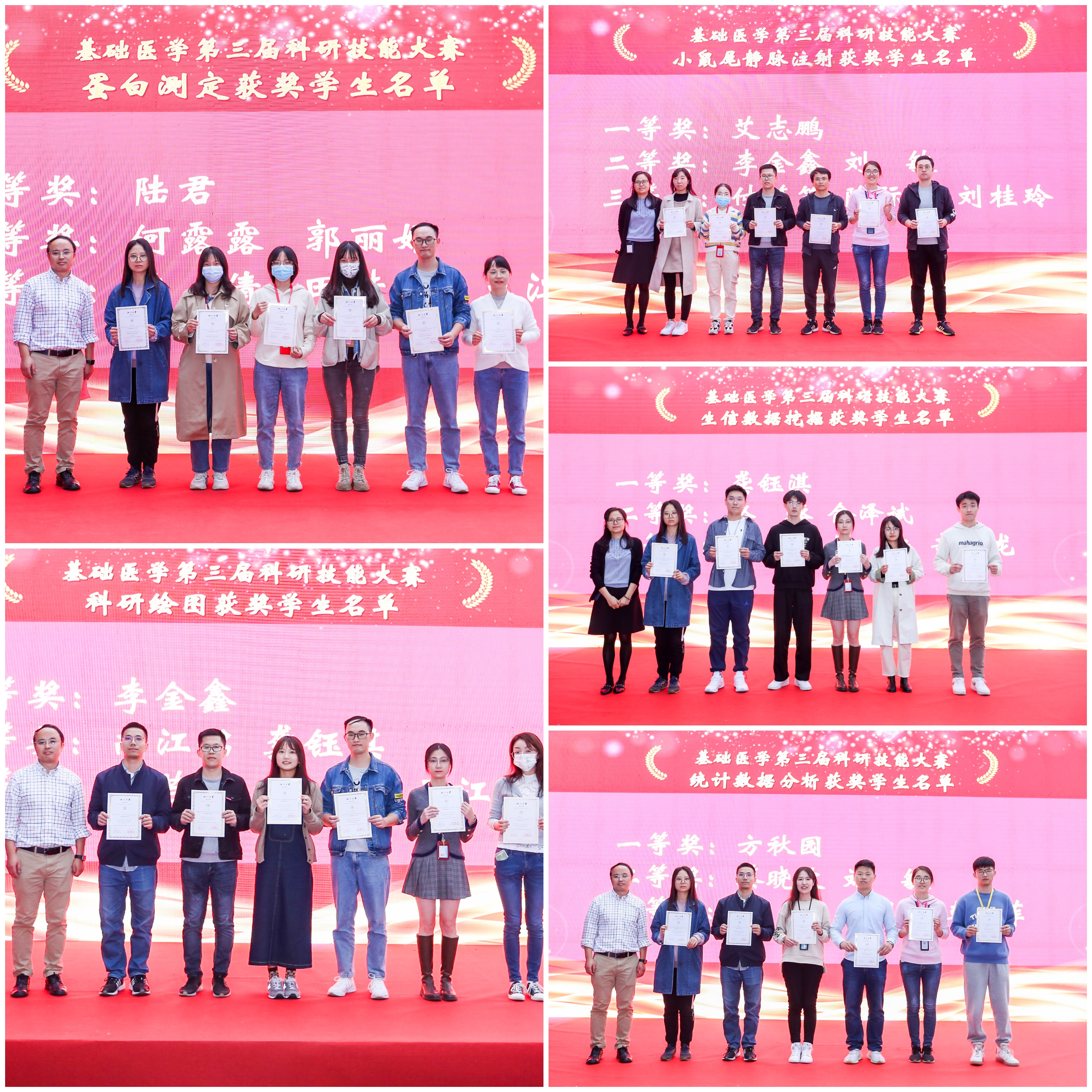 另外,科研技能大赛分别评选出蛋白浓度测定,小鼠尾静脉注射,科研绘图,生信数据挖掘,数据统计各一二三等奖。