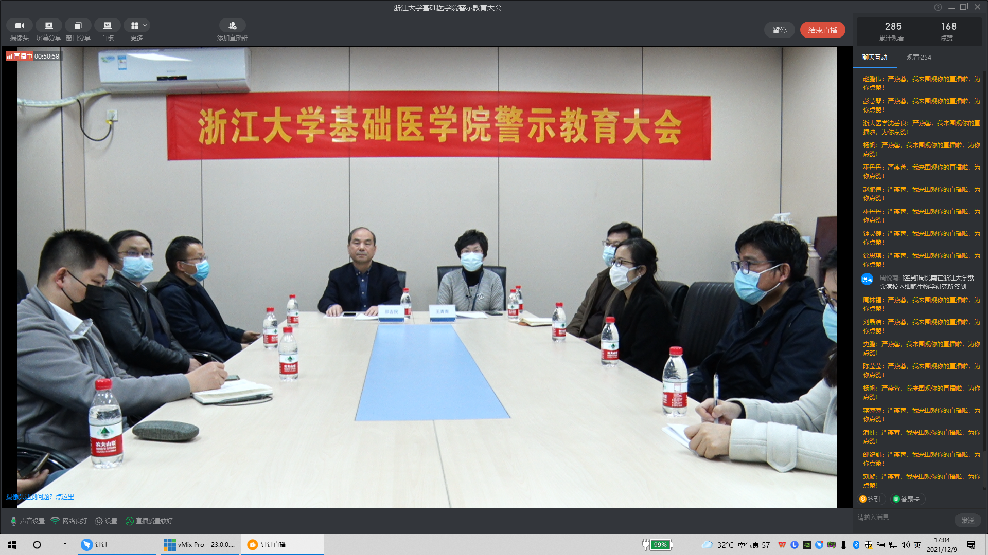 2021年12月9日下午,万象城allwincity官网采用线上线下结合的形式召开了全院警示教育钉钉大会,三百余位教职工参加学习。
