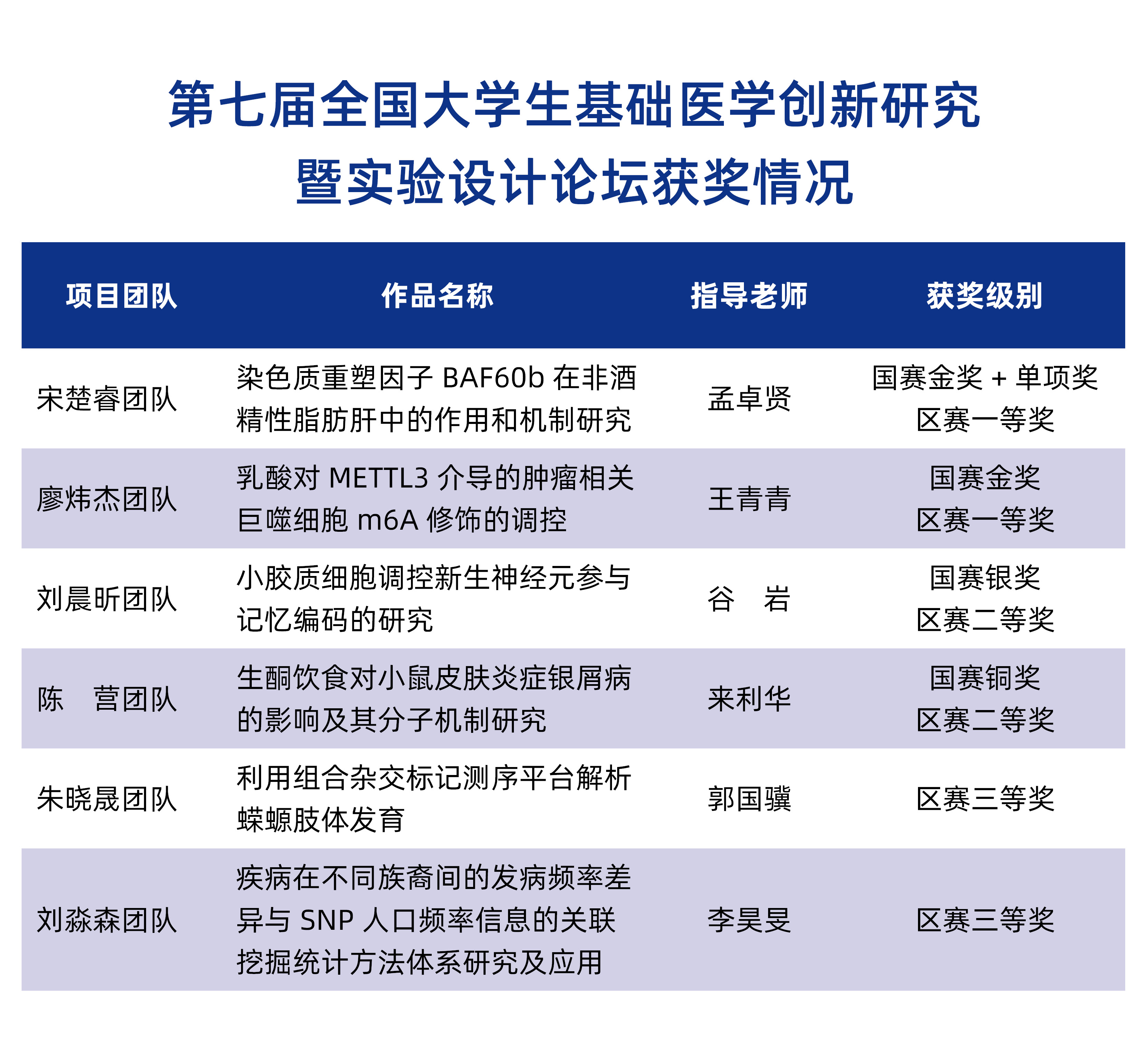 由高等学校国家级实验教学示范中心联席会基础医学组主办的第七届全国大学生基础医学创新研究暨实验设计论坛全国总决赛于12月3日-6日在西安举行。万象城官网遴选的4支本科生科研项目参赛队伍在决赛中获得两项金奖(同时获最佳学术奖),一项银奖和一项铜奖。